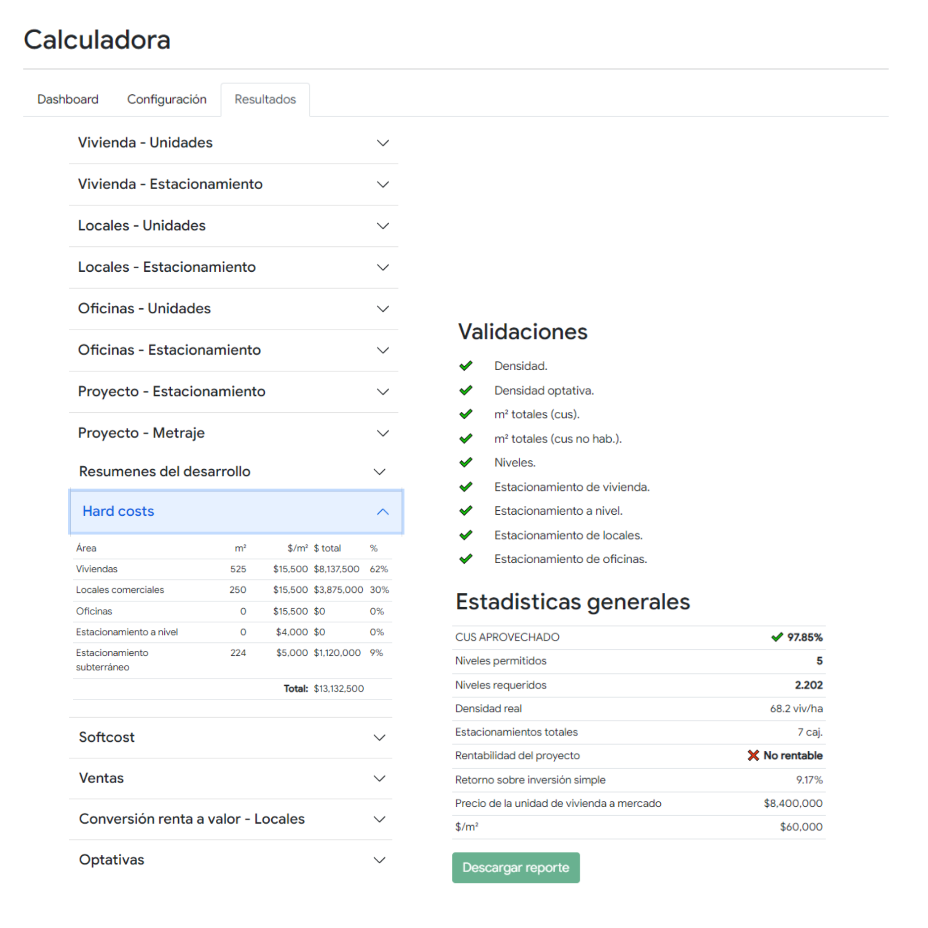 Descubre nuestra calculadora inmobiliaria, una herramienta poderosa que brinda información precisa al instante. Obtén estimaciones detalladas de precios, hard cost y costos de financiamiento. Toma decisiones informadas y maximiza tus oportunidades en inversiones inmobiliarias.